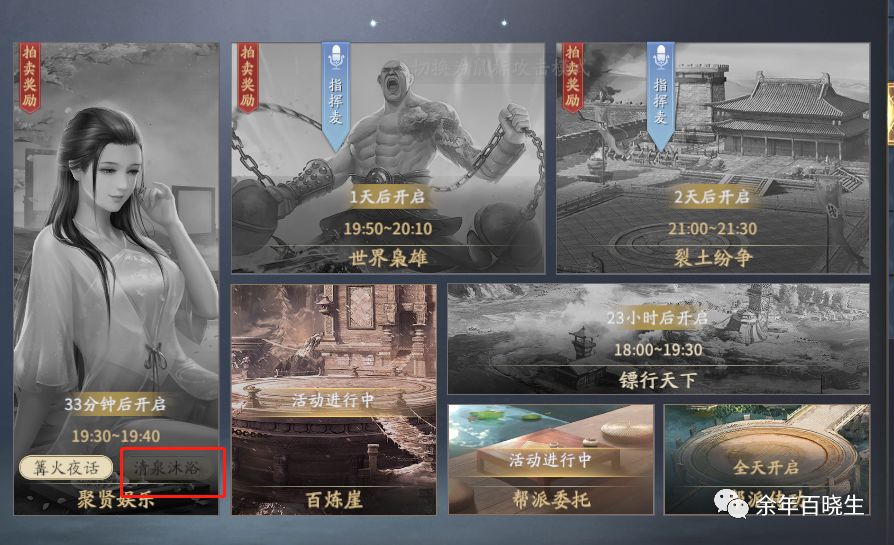 3.各种帮派活动泡温泉:挂机可以收货经验(等级上限时收益为见识)。后面需要去采草药,采集到规定的数量即可,采多了或者采少了奖励都会变少。活动结束开启拍卖。