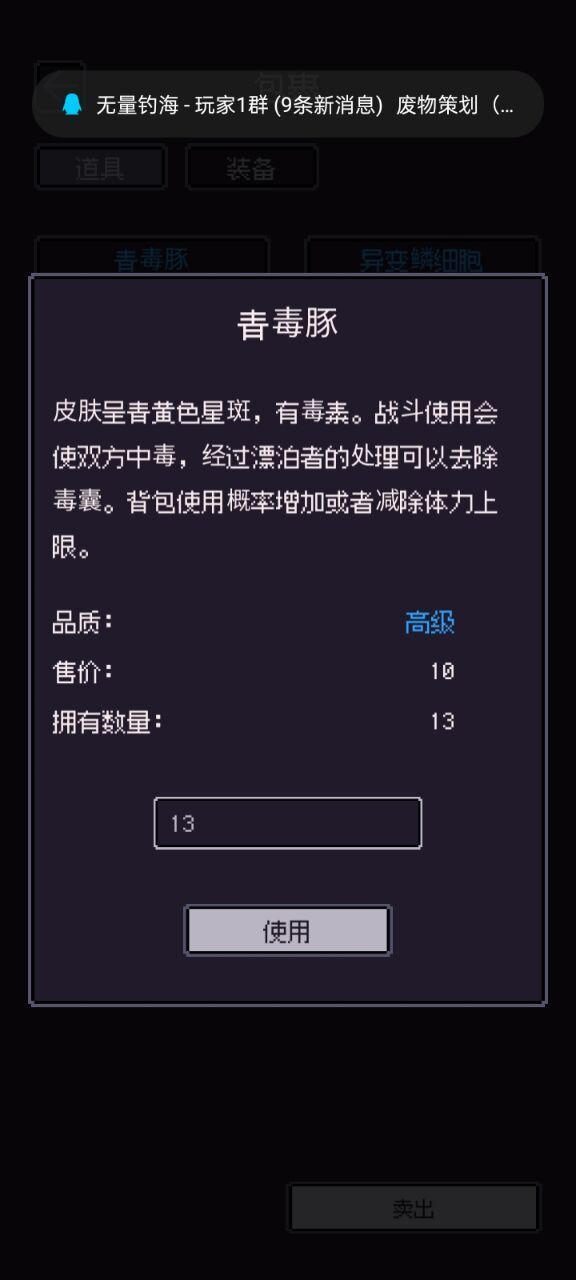 新物品青毒豚,因为赌狗性质与运厄矛相同,就叫他矛豚就行,效果,不好说!![[嗒啦啦4_好耶]](https://img.tapimg.com/market/images/d378b7a8f38cae2d3dfb6170d918238b.gif)