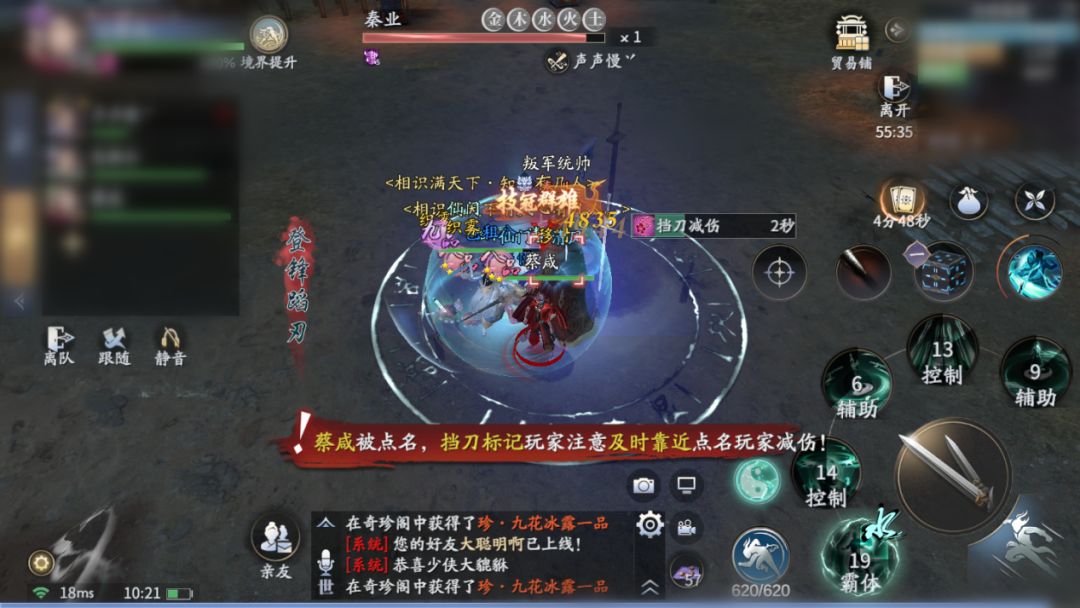 最终我们前往叛军根据地,对阵第三关的BOSS也就是叛军统帅秦业。BOSS的一技能【登锋蹈刃】将会随机点名锁定一名玩家和一名挡刀玩家,会出刀对点名玩家造成巨额伤害。解决方法也非常简单,挡刀玩家靠近被点名的玩家即可大幅降低BOSS造成的伤害。