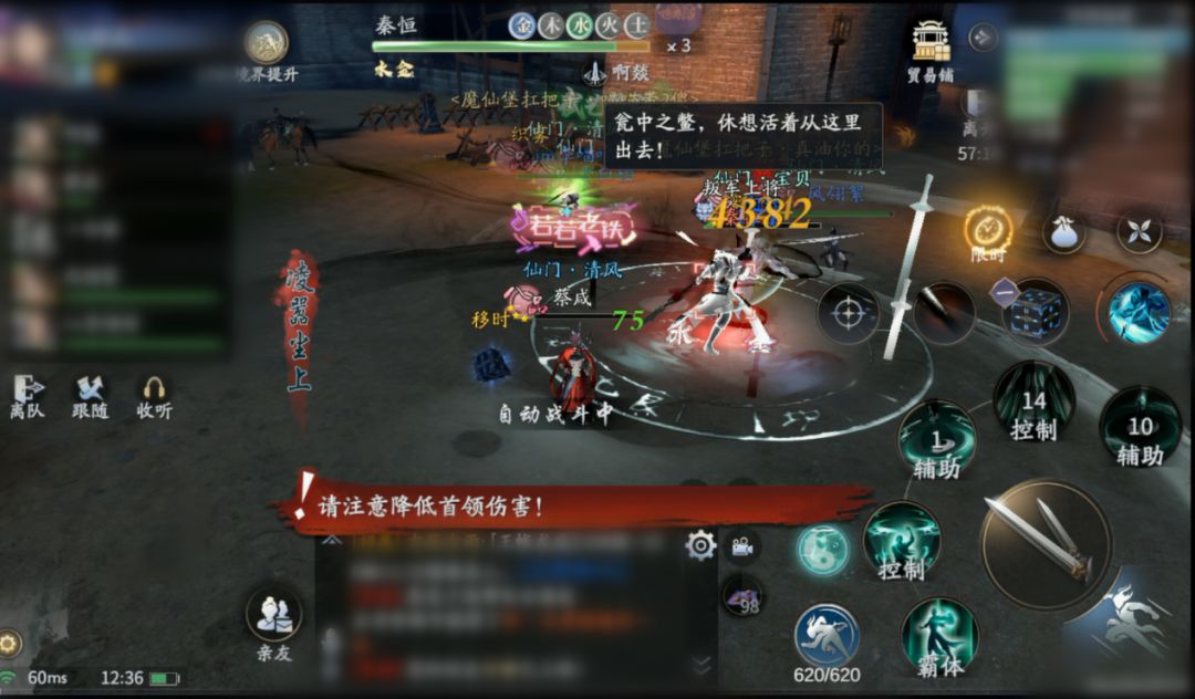 秦恒的二技能【凌嚣尘上】会锁定场上的一名玩家,造成三次高额爆发伤害。该技能同样无法规避,队伍里如果有琴,可以开减伤技能降低BOSS造成的伤害。这一关的主要思路是集火BOSS尽快秒掉,减少BOSS技能的施放频率。