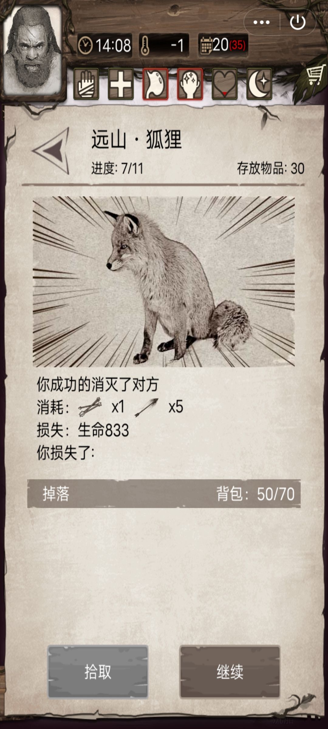 第二,打架以前记得吃丸子(避毒丸或者强身丸,看主题)!我打三狼、狐狸都把吃强身丸这茬忘了(除了背水自身强度,也是我仙豆花得多的另一个原因)。不吃就打的后果?看下图吧