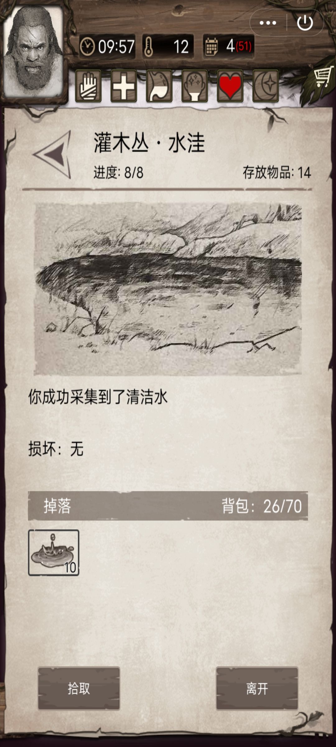 淡水卡得挺死的,因为我开始怕木头再烧水不够了,所以我用4份淡水卡出了6份肉汤,就一天卡两次肉汤,出了3个为止(众所周知肉汤、箭都可以双倍)。