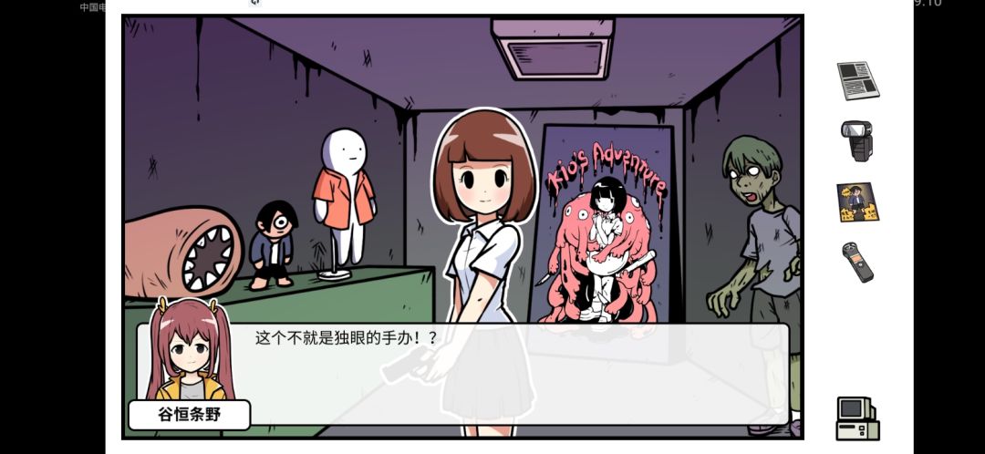 点击独眼手办触发对话,女子会开始说谎,使用物品依次破除谎言,手办海报—游戏周报—录音笔
