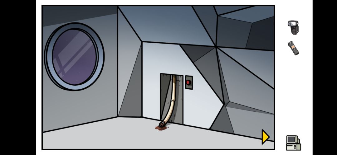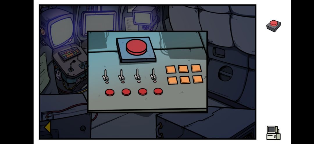 刚开始直接走右面到大门,点击启动器的暗闸,取出迷你按钮,然后再点启动器的按钮,回到飞船场景后回直接进入新场景(注意:一定要先取出迷你按钮后,然后再按大按钮,如果不这样做会直接触发结局)