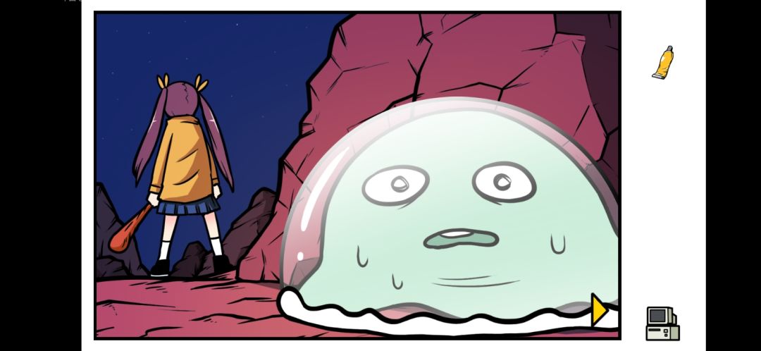 在这个场景里,玩家一定一定要用玻璃罩子和万能胶困住史莱姆,不然的话有你后悔的,在困住史莱姆后就可以接近谷恒条野了,接近顺序依次是慢慢移动—变成石头—快速接近