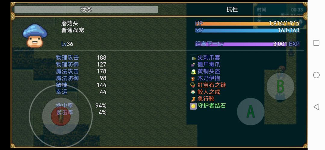 因为变异后掉级关系,所以看上去有些属性反而下降了,其实升级回去了又会增加一次。暂时没有变异后的升级属性,放一张变异前36级的同装备属性图