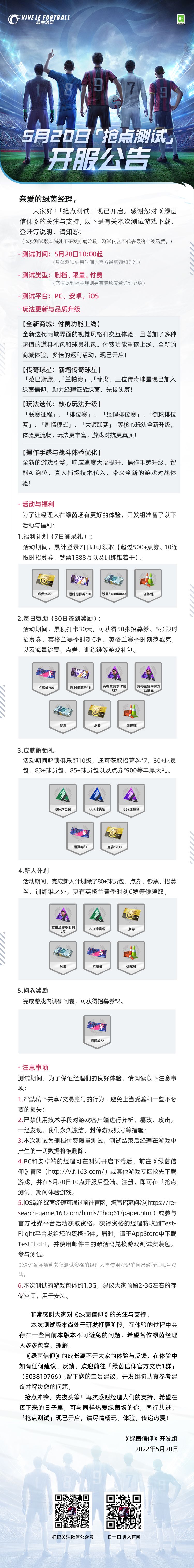 「抢点测试」现已全面开启!绿茵场期待你的降临!