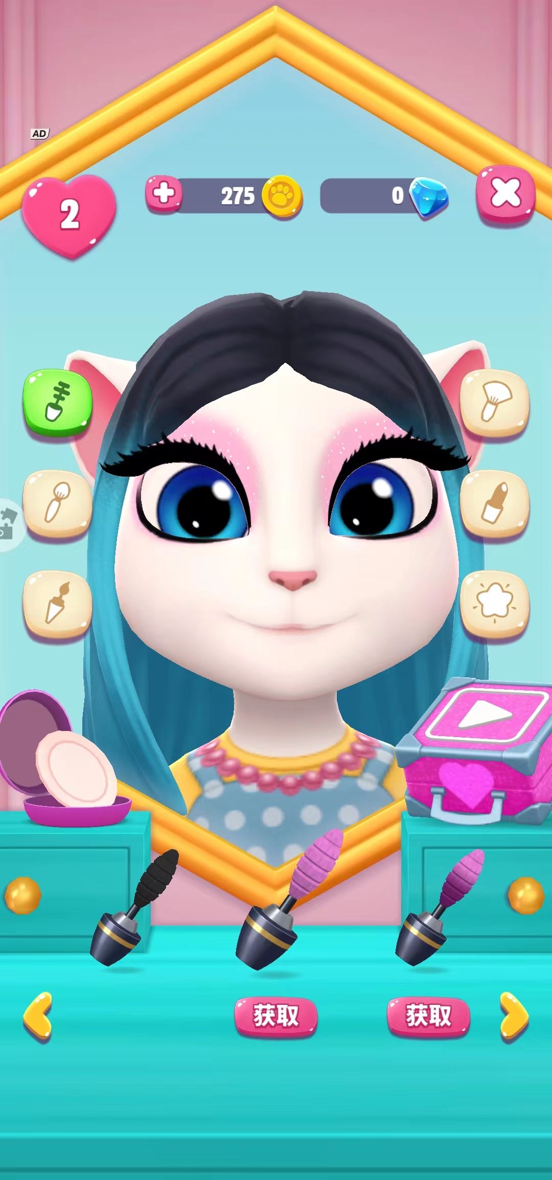 换上好看的衣服后,别忘了给安吉拉化妆哦。眼影,眼线,睫毛膏,腮红,口红,粉底液应有尽有,让安吉拉瞬间化身最美的明星。