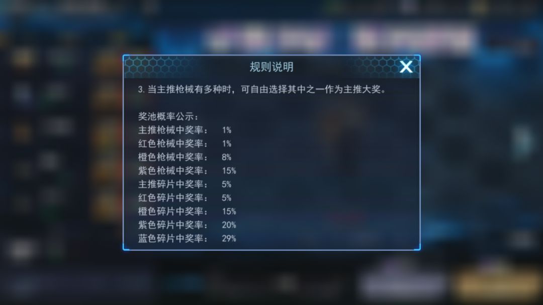 限时神枪每次抽奖可获得奖池中的随机奖励,并获得1点幸运值,幸运值越高大奖获得几率越高,幸运值满时必中主推大奖,抽中主推大奖时,幸运值将清零。