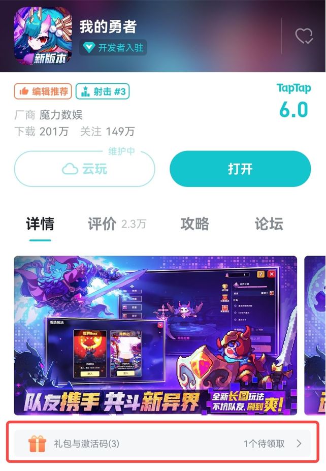 *由于TapTap平台限制,只能在TapTap App中才会显示【礼包与激活码】。