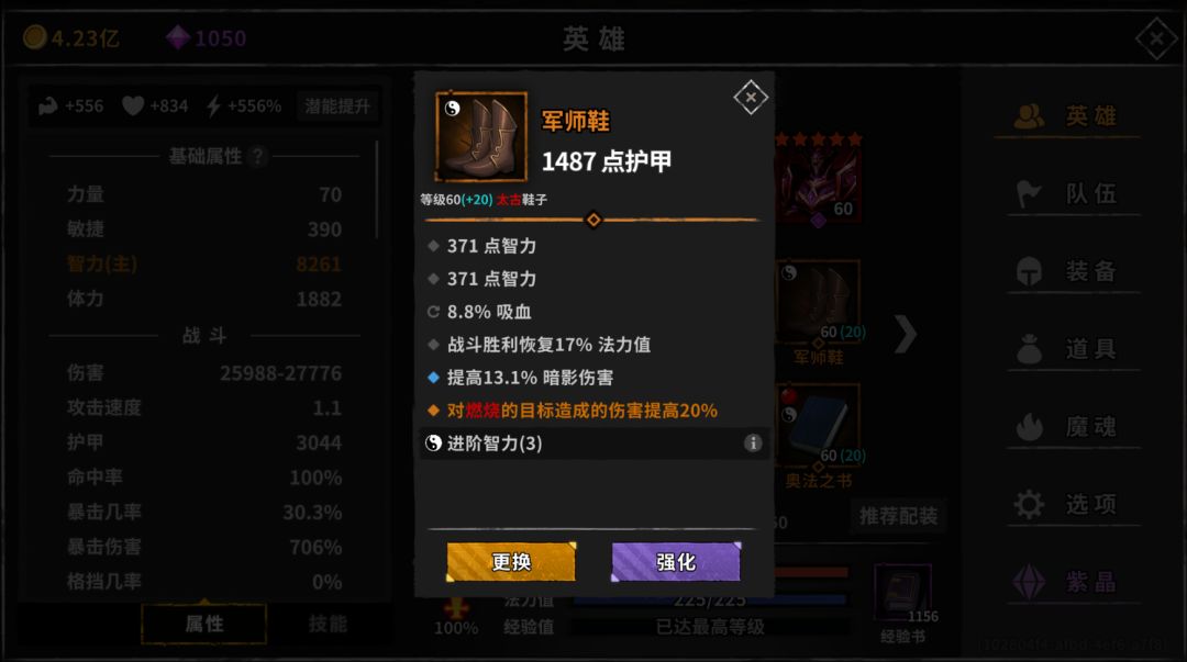 副:智力 精英/百分比智力 吸血 暗伤 防闪/最大 (奥法或赤法)