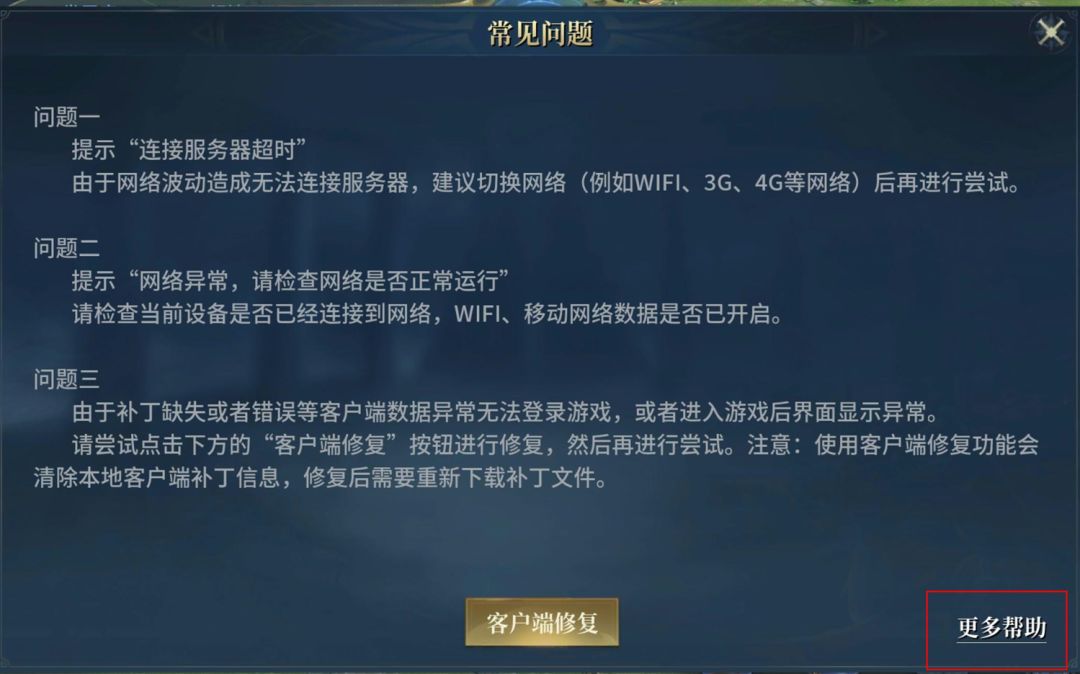 各位领主大大如果在登录过程中出现了卡流程问题,可以点击右上角的修复按钮。