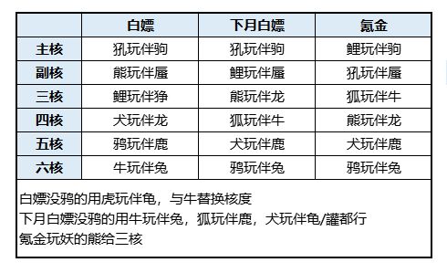 2鲤换5犼给主核,犼不玩伴给副核,熊狐犬等青宠核度往后移,下阵狰。
