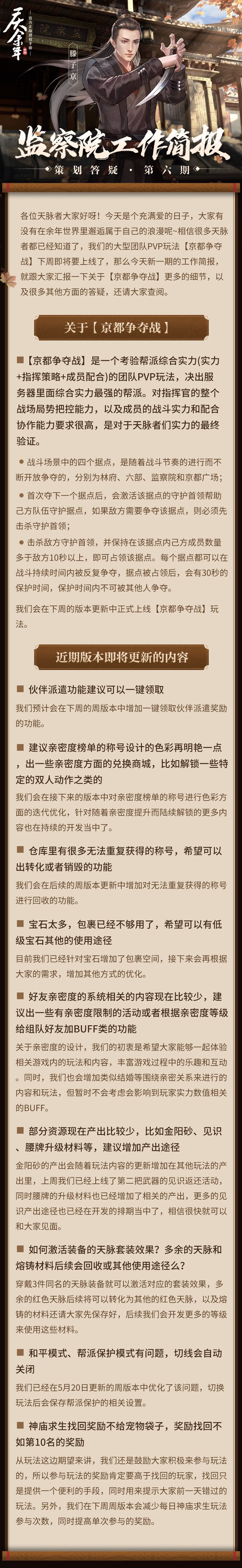 今天想和大家汇报一下【京都争夺战】的细节,以及其他大家关心的问题答疑,一起看看吧!![[嗒啦啦4_比心]](https://img.tapimg.com/market/images/d28961d9ef2d62e62333b8d17a8612dc.gif)