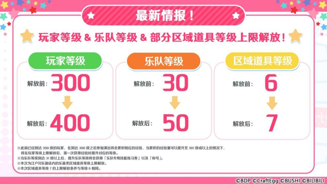 玩家等级上限&乐队等级上限&部分区域道具等级上限解放!