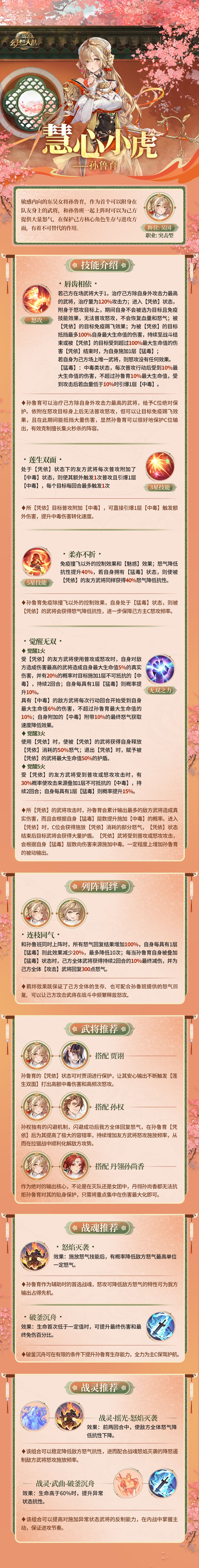 小将军们好,介绍完大虎,今天玲绮为大家带来的是慧心小虎孙鲁育的技能解析和搭配推荐,一起来看看吧。