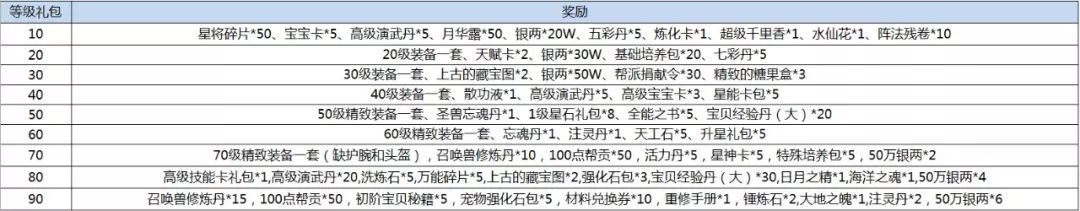 活动内容:新服期间,水粉们每升十级即可领取等级大礼包一份,福利多多助你成长