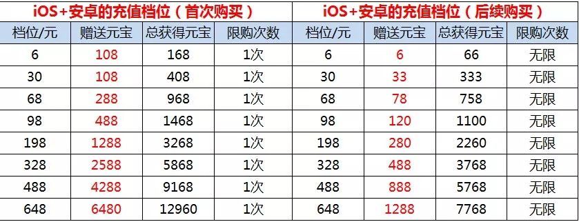 活动内容:水粉们充值可获得元宝返还,不同档位首次购买可获得至少20%的元宝返还