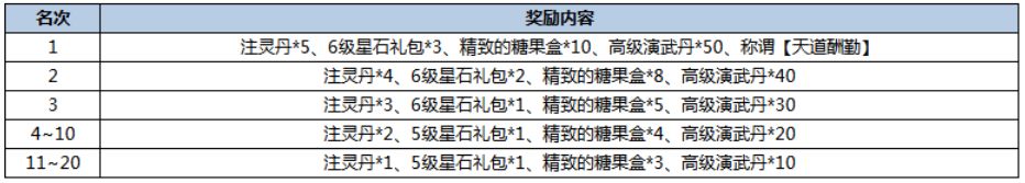 活动描述:活动结算时,等级最高的20名玩家可以获取丰厚奖励哦~