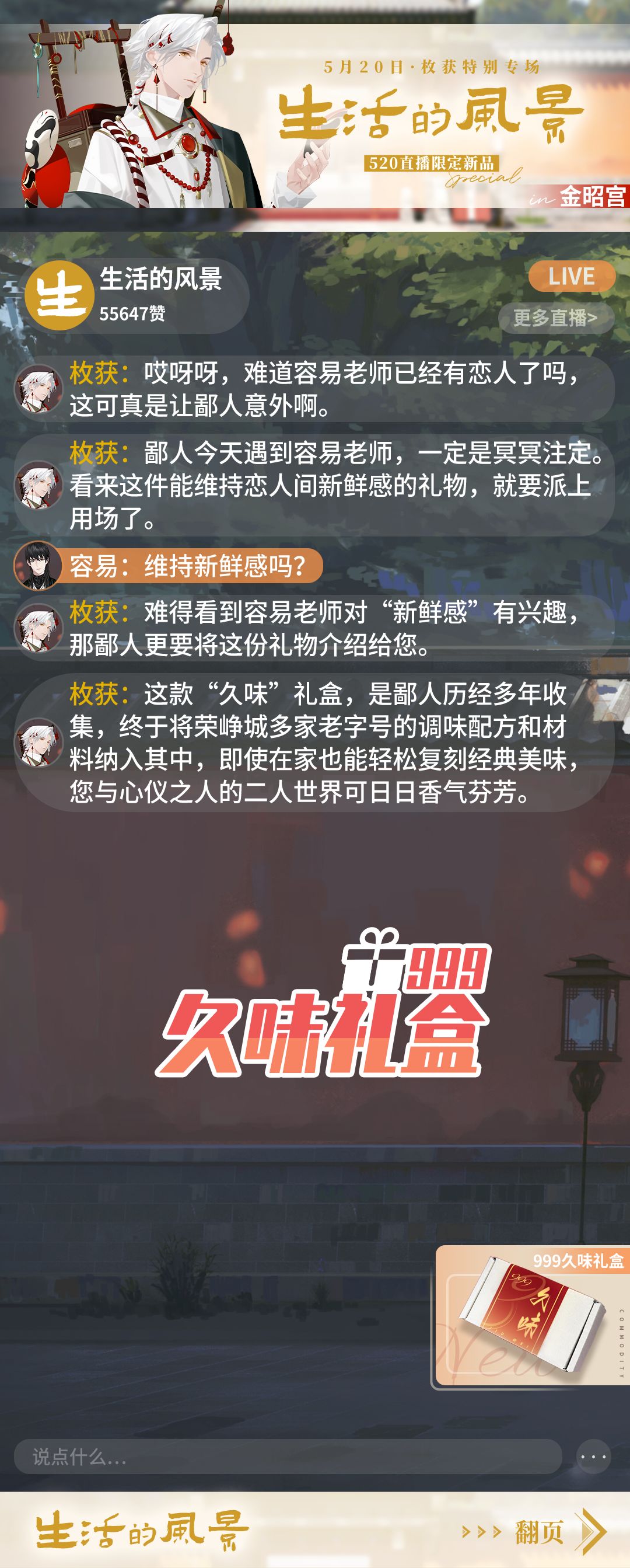 999城知名卖货郎——「枚获」先生首次直播亮相!携手《生活的风景》栏目为大家带来520特别新品和爆款好物!