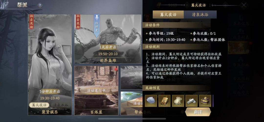 以上便是帮派活动的开启时间以及玩法细节,有不懂的问题及时和帮派大佬沟通、解答,以及共同下副本、挑战等等,加入帮派游玩起来会方便不少。