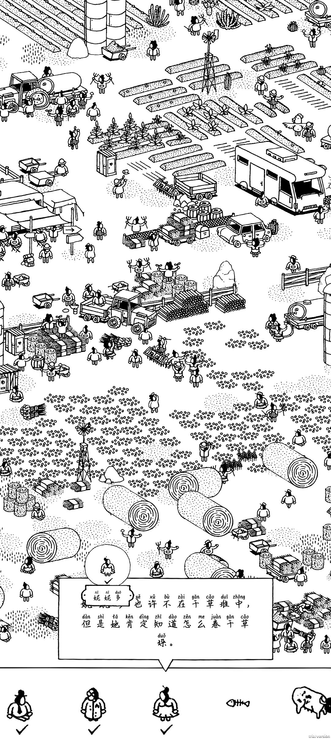 妮妮多在一个干草堆里面,多点点干草堆