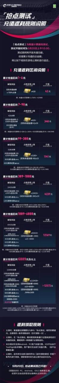 公测返利的结构大概是:充值额*比例+额外球队基金(月卡)、赛季经营(通行证)+训练锥+称号