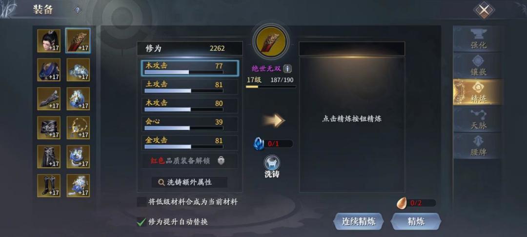精炼前期可不用去管属性按照绿色蓝色紫色金色,等全洗练为金色后再去洗适合自己角色得属性。
