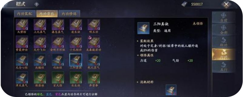 近期活动红色内功都能获得,若为氪金大佬可配置四本专属内功。