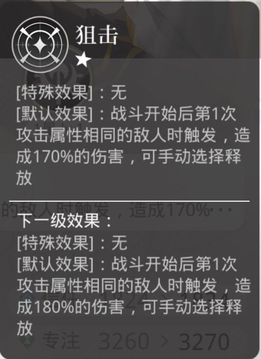 (4)狙击:遇到同属性触发,造成单次百分比伤害,无次数触发限制。