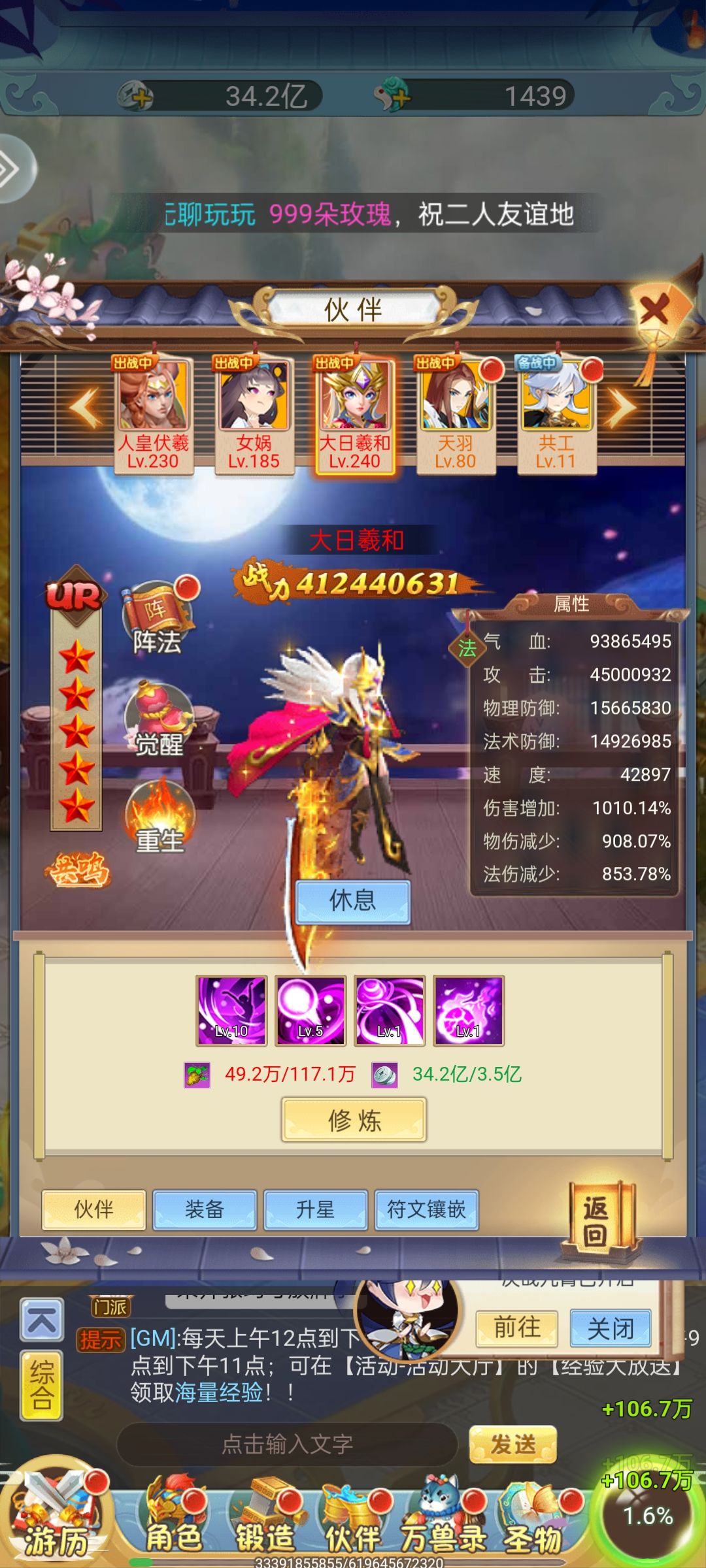 伙伴优先搞曦和过副本,过任务,资源要会倾斜让她一个人成长 宝宝最关键一定要有好技能在打技能,别乱打技能,不然到了后面你有了技能打不上去,因为一只宝宝技能锁定三个 充值也最关键,只用整星座,别的都可以不买区148偷了月亮的猫