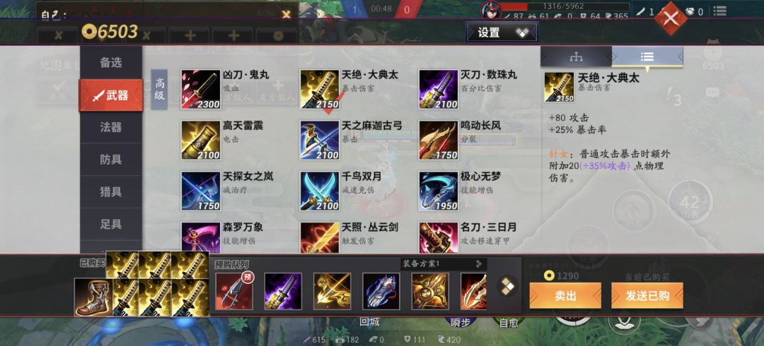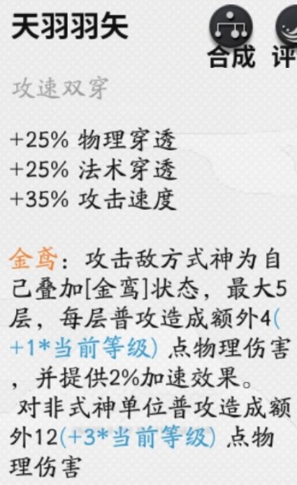 但是天羽的穿甲在前期没用,攻速也给不了多少,特效此时相对其他简单干脆加攻击力的装备在普攻时并没有优势,所以出完整件之前相当于没出。如果想要追求平滑过渡的话可以掺一个小镰刀