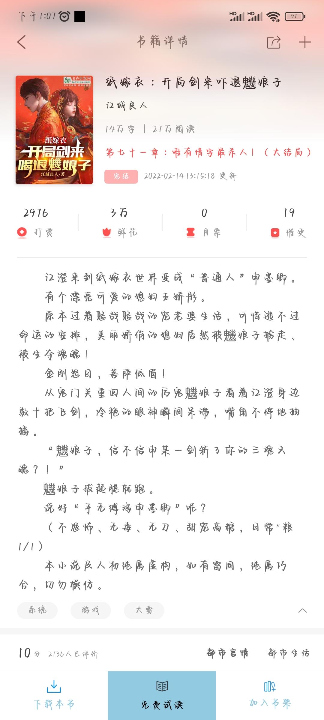 原本在论坛上看到一个人说想写纸嫁衣的同人小说,我抱着试一试的态度在飞卢小说上搜了一下,没想到还真被我找到一部,就是比较想问,没有版权能写吗?