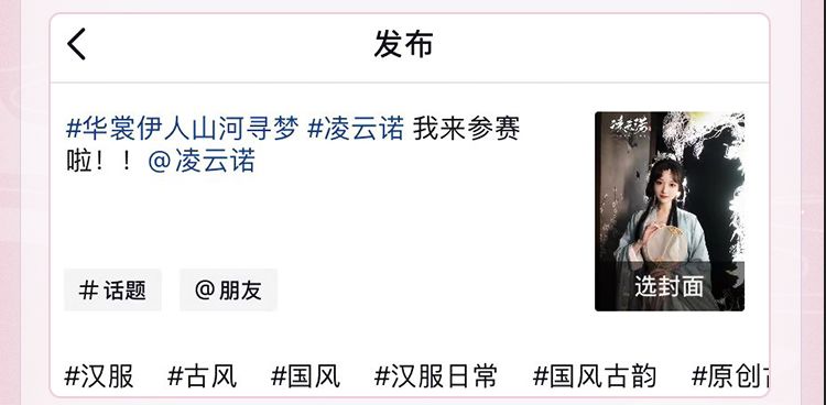 8.视频发布时必须带上话题#华裳伊人山河寻梦和#凌云诺;