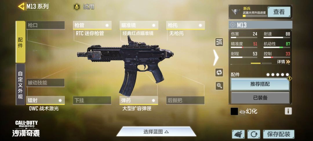 M13伤害不高,但射速较快,射程较远,且后坐力相对可控,因此受到很多战士的喜爱。本汪这把M13-Mini版,战士们可以来尝试看看。