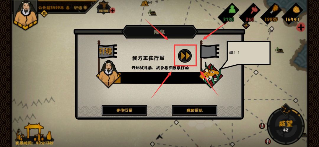 ⭐配兵页面可查看战争地图,也可通过退出进入来重置地图