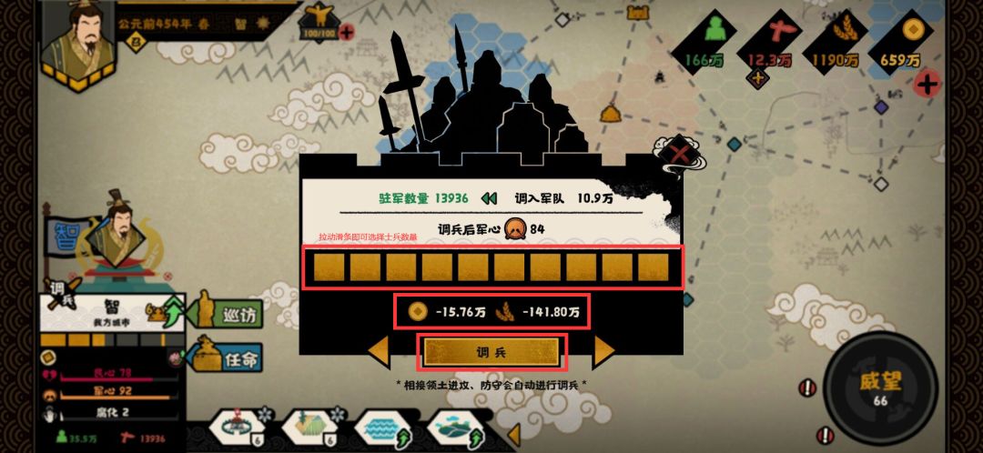 通过调兵,一方面缩减行军时间,一方面可用资源来获取无限军心