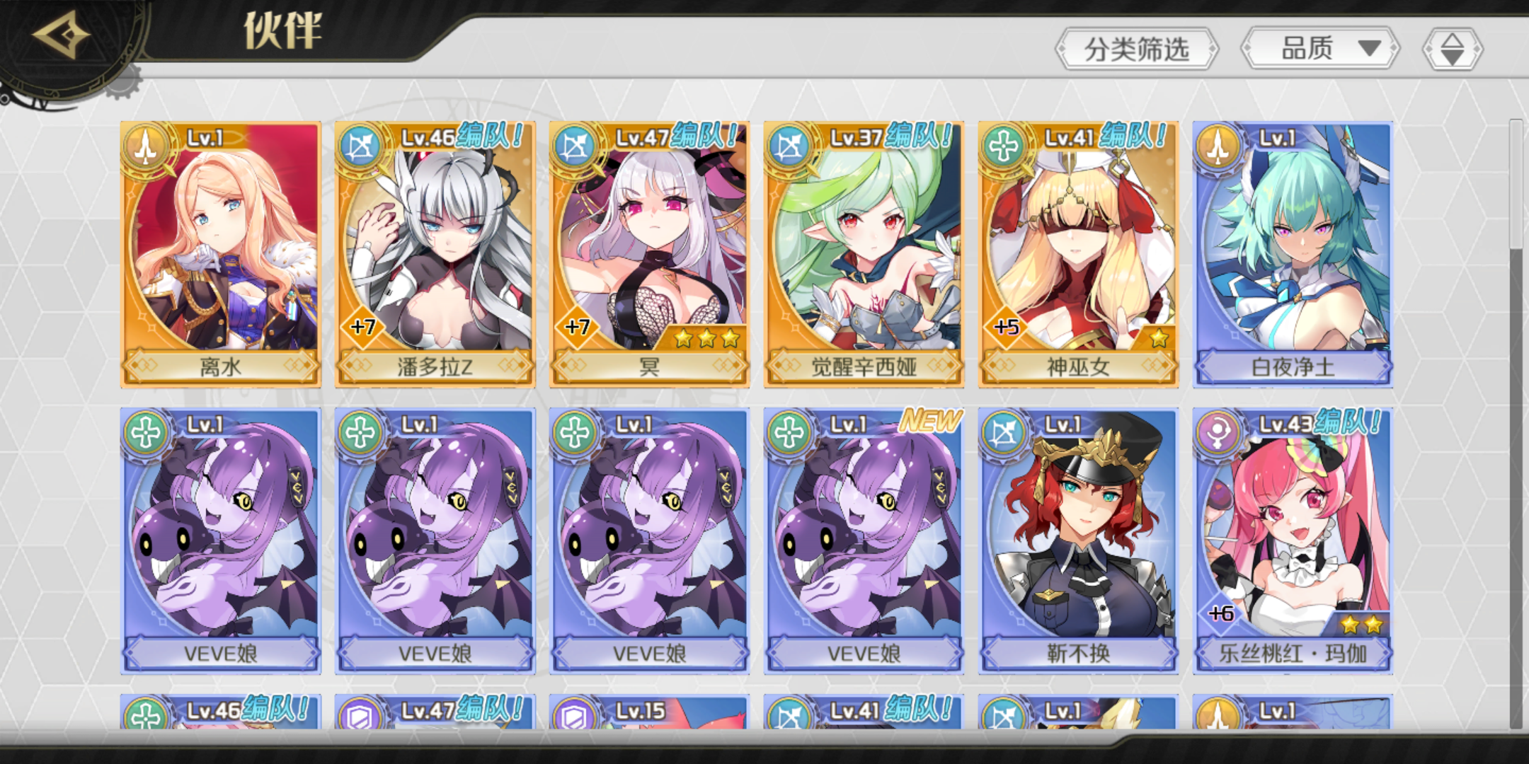 零氪玩家,签到十五天。开场20连巫女,命运之门辛西娅,120抽给了冥和潘多拉,硬币十抽没货,其他池子没敢碰。80抽给了离水,已经被榨干。还有没有比我惨的?凭实力三个ssr,没有歪一个的?另外五抽一个猫四个免费的r。