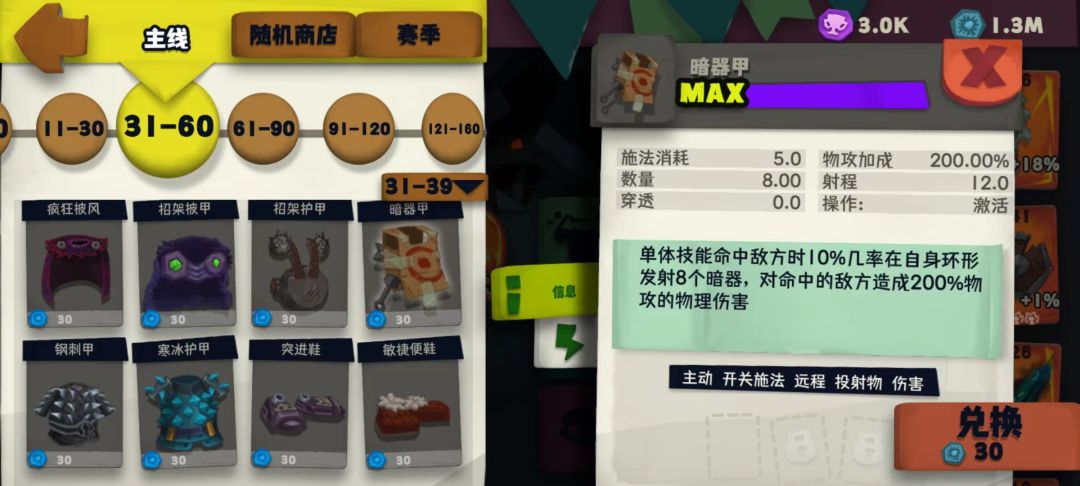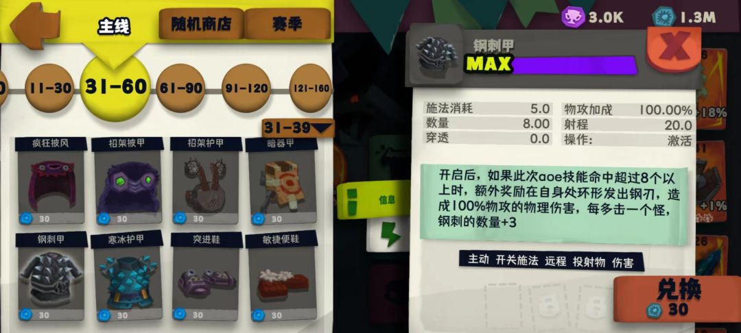衣服:提升buff效果×3、投射物数量×3、暴击伤害×3