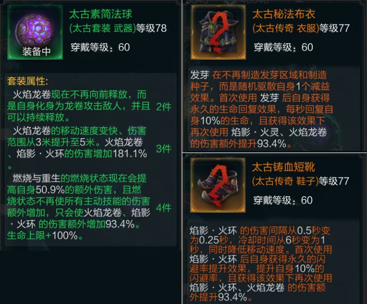 这套搭配的优势在于打刷图清怪,同样是利用两种形态间的切换达到最高输出效率,在人形态下利用②③技能制造火焰种子,并获得普攻伤害提升的效果,再切换熊形态使用②技能进行引爆。