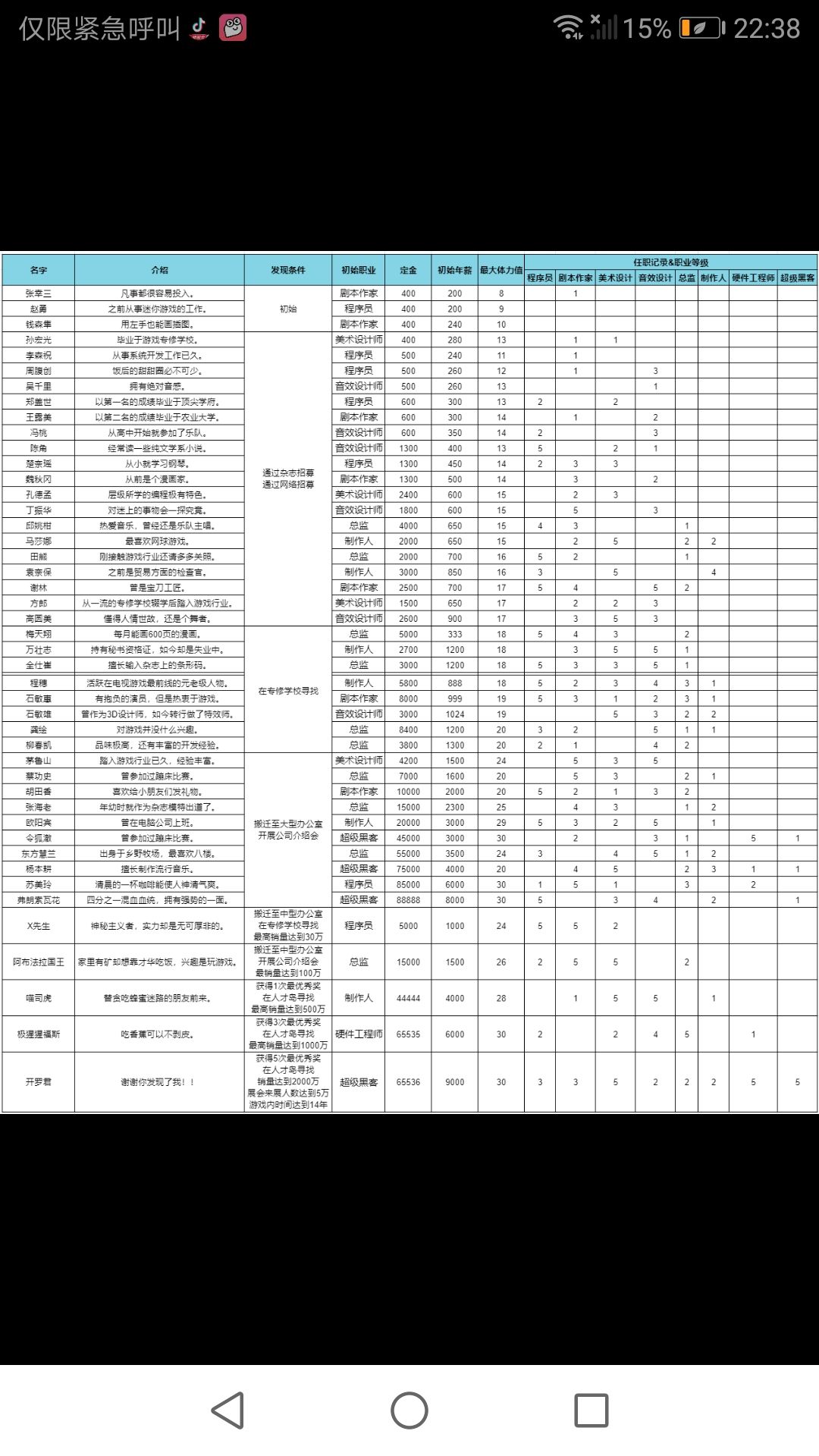然后500招聘,争取4-5次内招到最便宜的这几个人:王露美(编剧)、冯桃(音乐)、孙宏光(绘画)、郑盖世或吴千里(工具人)