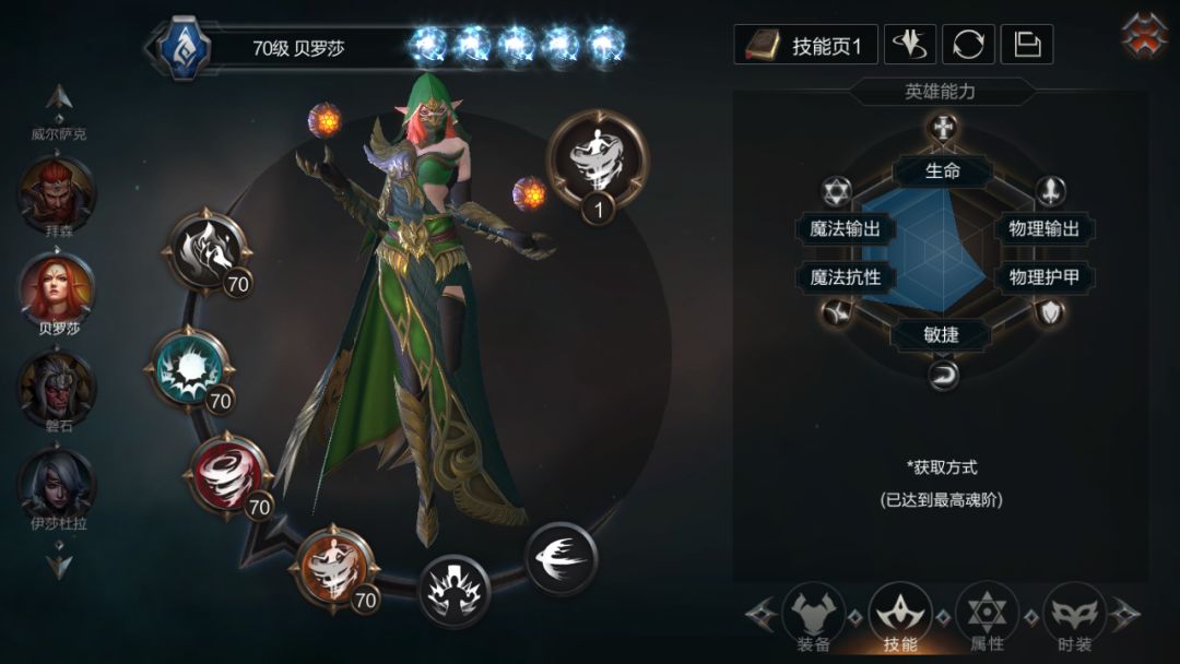 贝罗莎擅长使用火系魔法,利用大面积的火焰魔法攻击敌人,还有一定的生命回复能力。主攻击属性:额外伤害