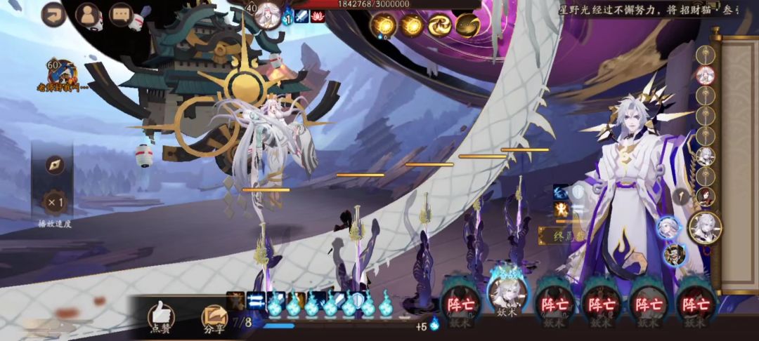 完全顺利的献祭队友变神,面前[5]把剑,SP大蛇站在阴阳师位子上,他是无敌的,毕竟100%减伤。