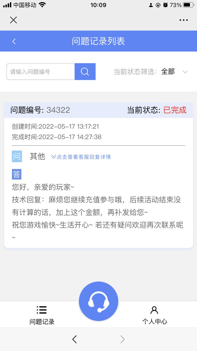 活动累计充值不到账,反馈给客服一直没人搭理,找了四五种方式联系上,客服反馈说要继续充值才有效,在继续充值6元 12元198元328元之后还是未到账,客服再次回复需要等活动结束再算,今天活动过期2天再找客服就不回复了,现在未到账也是不了了之。