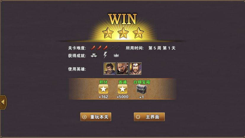 首先查看三星过关条件(5周1天内通关地图,并在挑战过程中获得15次三星战斗评价),兵种推荐:朱雀、鹰卫、法师,战术卡推荐:准备就绪、战前准备或者火箭,朱雀之痕、雀炎(如果没有朱雀卡可以换法师卡天人合一、极意),如果上一关买了贾诩,可以选贾诩出战,我没有购买英雄所以就用典韦,辅佐英雄选定之后往右走访问神庙,行动结束第二天下面会出现两个小boss吕旷、高干,很弱,轻松打掉,顺便把下面两个资源矿打掉占领,往左移动一路过桥对面,把路上各种怪都打掉,资源全占领,过桥返回,这时候敌人boss审配会出现,有点实力,如果装备好的话可以直接单挑,我装备不好所以只能回城招兵守城打,首次打掉审配会得到一件一孔红装寒绯。然后出城向上移动,右边有个观星台把小怪打掉可以招募法师,然后看见一个boss韩猛过来了,直接上去打掉吧,旁边有个资源寺庙可以访问,继续向上前进看见一座神庙可以访问,3周1逢纪出现,访问右边神像,通过右上角昆仑镜传送回家,往上去观星台招法师,逢纪会下来如果有实力可以直接单挑,本来想引他攻城,由于招的兵有点多,居然害怕不来攻城,只能出城打他,打掉逢纪后,系统提示战况升级,张合、高览出现,而且曹操可以再招募一个队友加入(如果宛城购买了郭嘉,建议选郭嘉,曹操把郭嘉扔到对面,然后郭嘉一个五技能把对面全冰冻,如果没有郭嘉就选其他英雄吧),张合会一直追击曹操不会抢资源,所以曹操可以在外面尽情的跑,把地图资源全占领,尽量多的发展兵力,注意不要玩的太欢了,4周1的时候要把张合引到城旁边(晚两天也没事),让他来攻城,打张合不要怕死兵,死完兵都没关系,只要能打赢张合,然后会恢复全部兵力,如果有金币可以对话张合九折购买英雄令,之后袁绍会带兵出城,待在城里等待袁绍回来攻城,打败袁绍,三星过关!附视频、截图