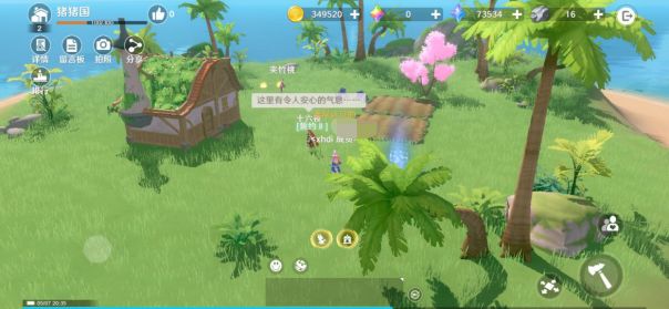 家园系统开放后就可以通过右上角的按钮进入专属家园了。进入家园之后就能看到你的小岛,还四面环海,整得真不错,不过也更期待会不会有别的背景!