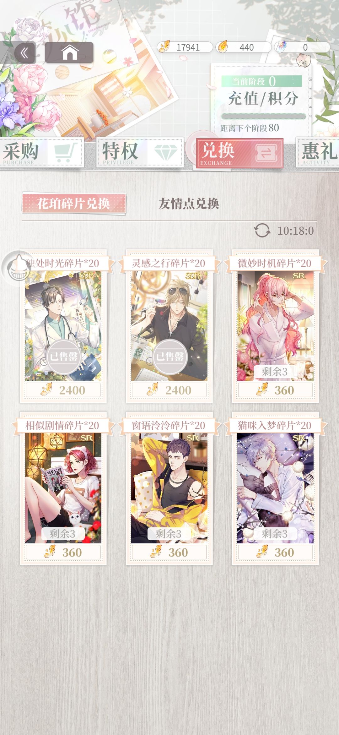目前进度是,剩余1.7w花珀。等明天兑换更新可以无压力换空。