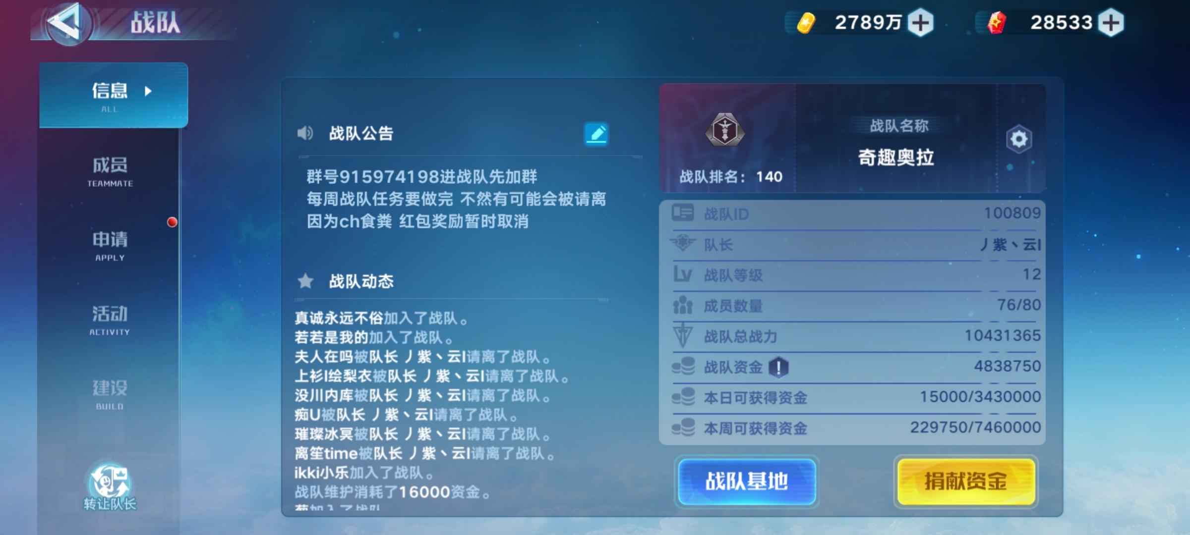 新版本即将开启,新的战队活动即将来临,我战队诚招活跃玩家,一起做任务 ,拿奖励。