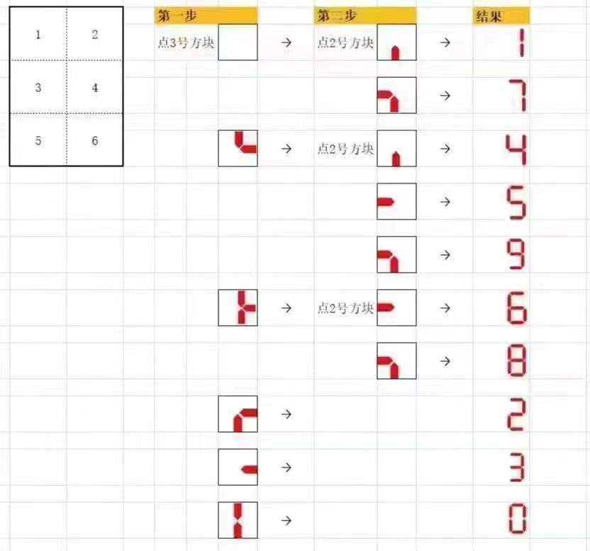 第二步,点2号方块,根据2号方块形状判断最终数字。