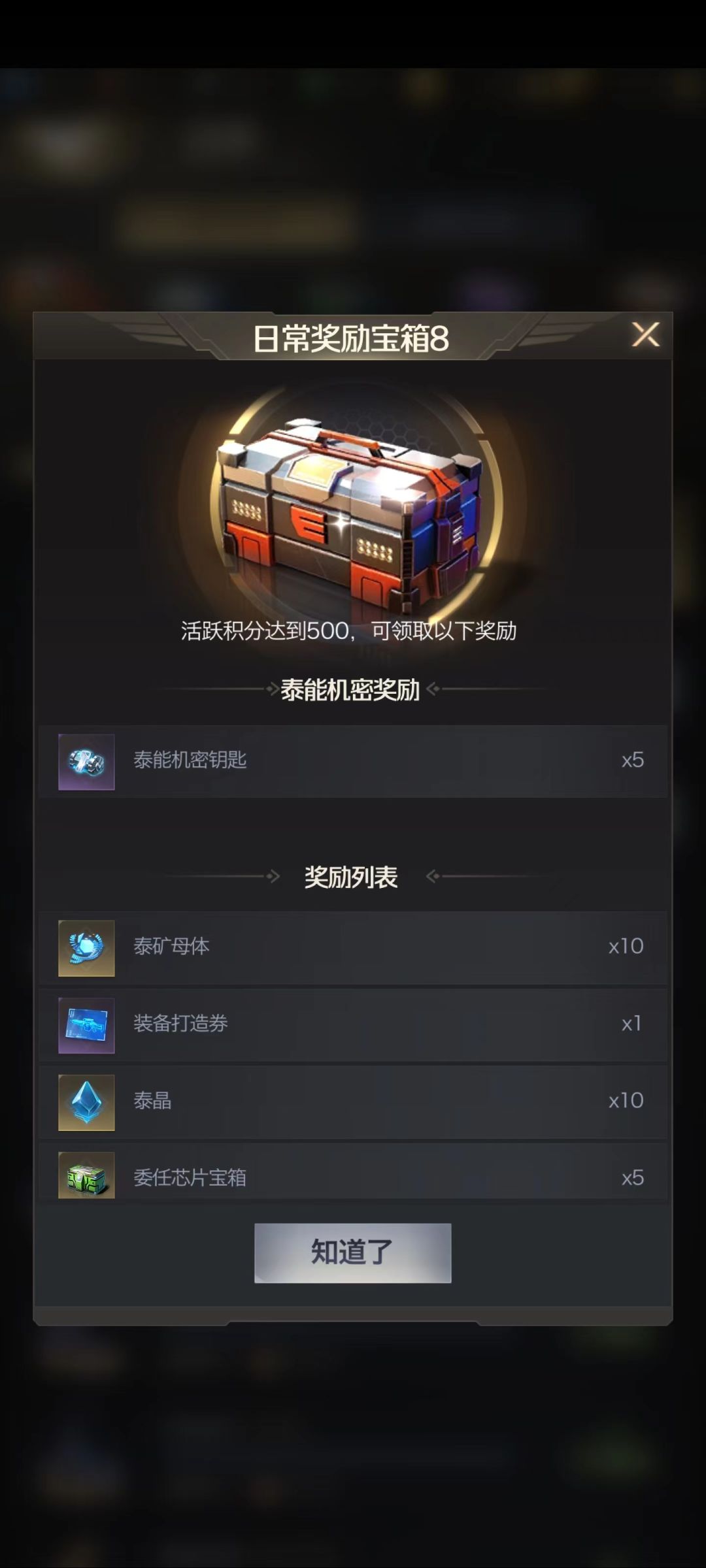 6、指挥官每天可获得的泰能机密宝箱存在数量限制,每天只能开启三次宝箱。